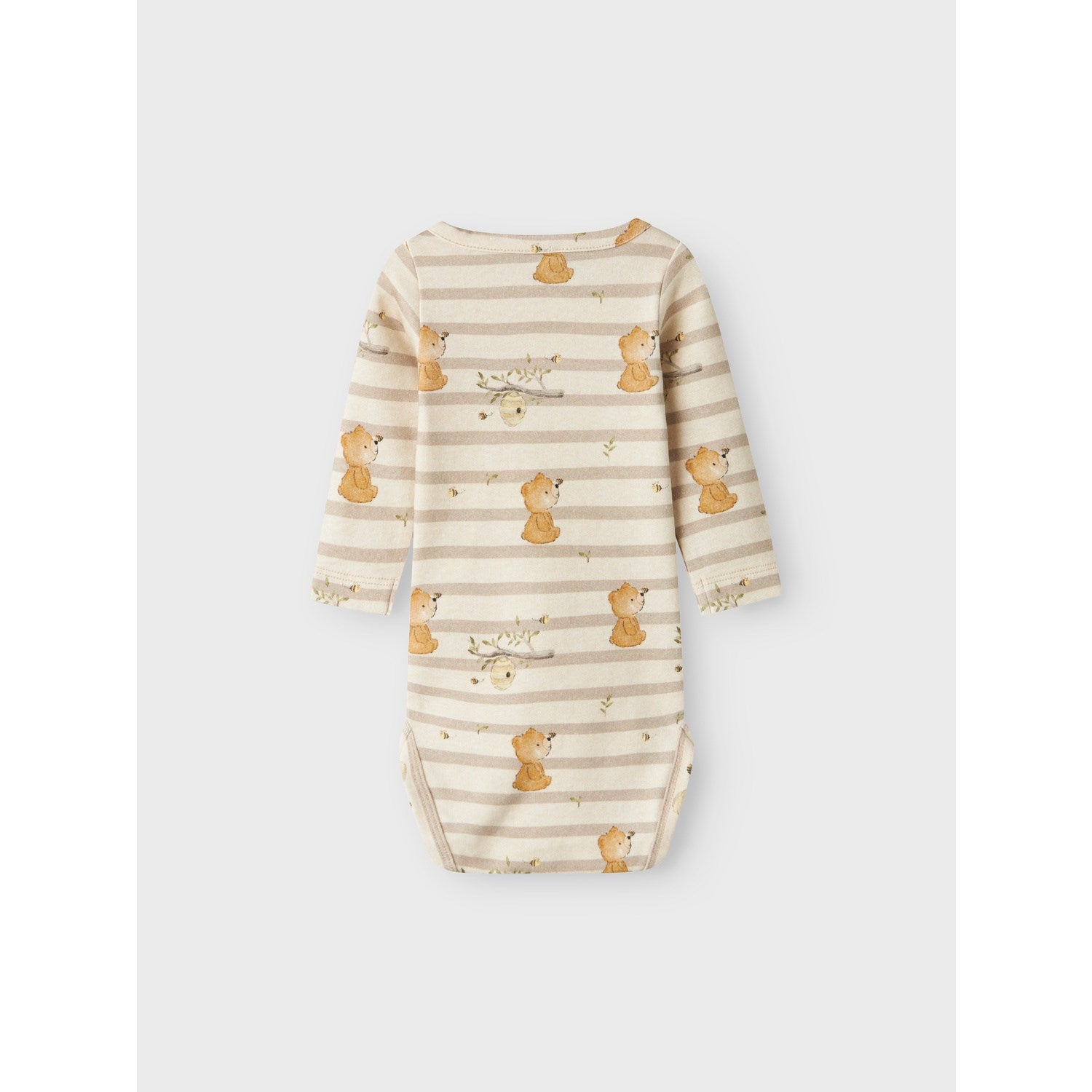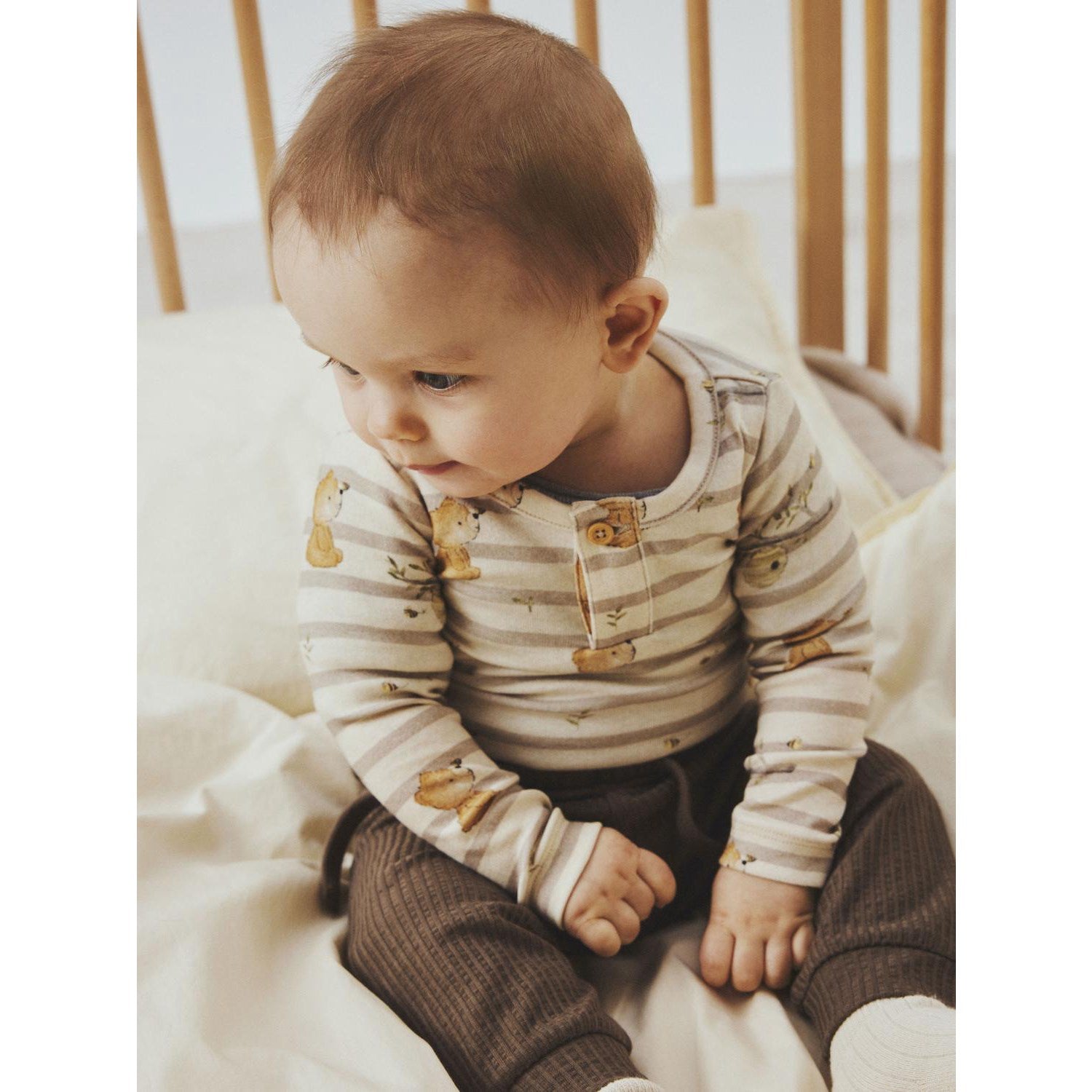 Med sine trykknappfestemuligheter blir påkledningen enkel og praktisk. Denne bodysuiten er dessuten prydet med en sjarmerende knappedetalj som tilfører et stilfullt touch. Det gjentatte mønsteret over hele plaggets overflate gir et lekent og trendy uttrykk som vil få barnet ditt til å skille seg ut i mengden.