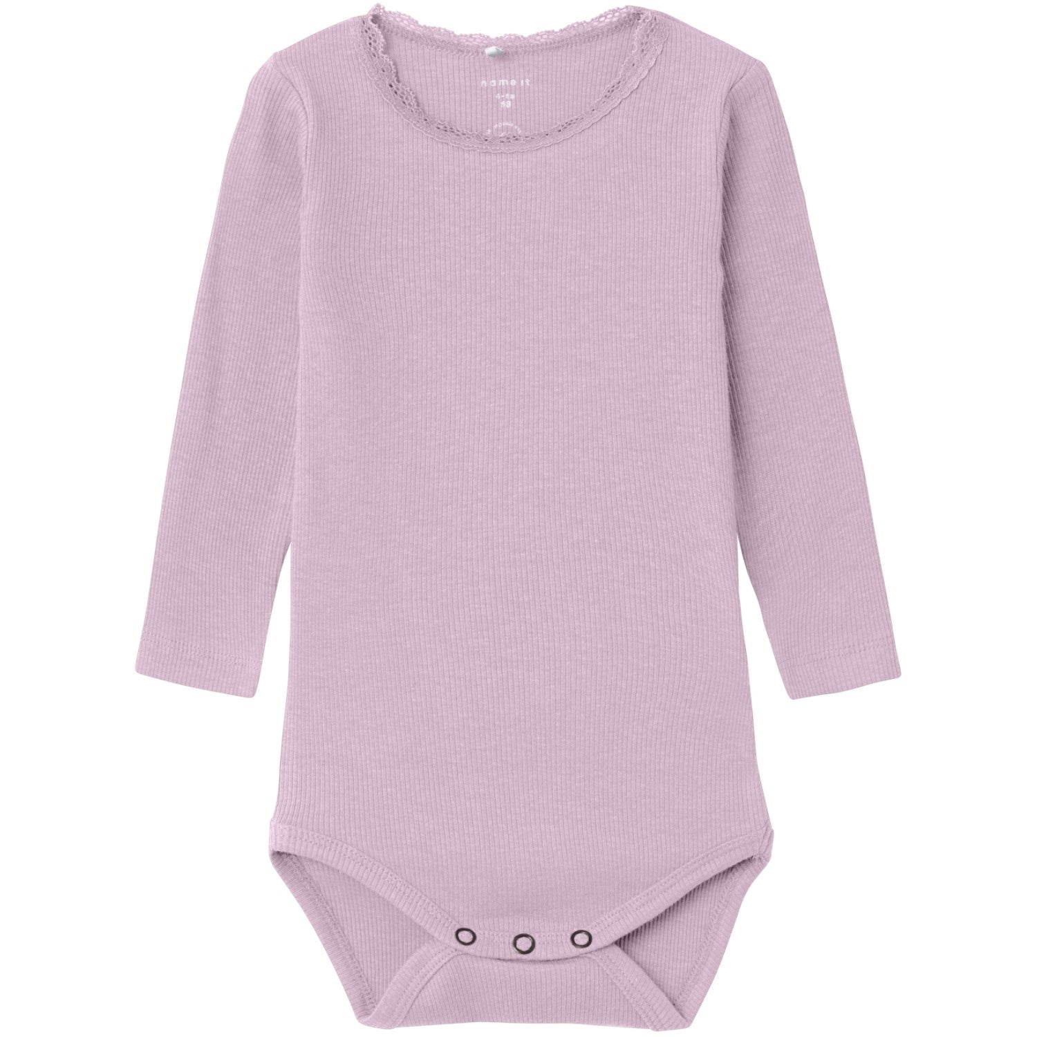 Med sin runde hals og lange ermer er denne bodysuiten ideell for kjøligere dager og kan lett kombineres med andre plagg for et stilig antrekk. Det tidløse designet og den attraktive orkidéfargen gir plagget et friskt og moderne utseende, mens størrelse og passform er nøye utarbeidet for å tilpasse seg barnets vekst og bevegelser.