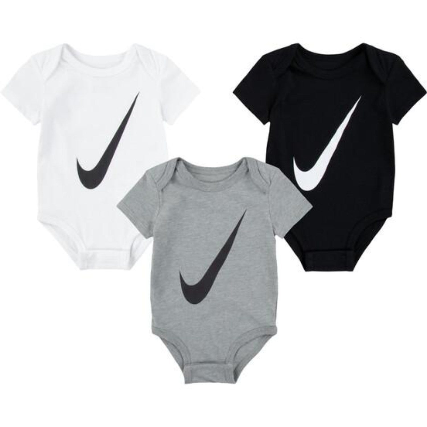 Gled barnet ditt med denne 3-pakningen av NIKE White Swoosh korte ermer bodyer, perfekte for lek og komfort. Disse bodyene er laget av et mykt og slitesterkt materiale, optimalisert for barnets bevegelser og komfort. Med et iøynefallende design, inkludert den ikoniske NIKE Swoosh, kommer hver body i en ren, skarp hvit farge prydet med et stilfullt mønster. Passformen er ideell for voksende barn, og bodyene er enkle å ta på og av, noe som sikrer praktisk bruk hver dag. Vask av disse Nike-bodyene er problemfri, perfekte for den travle hverdagen.