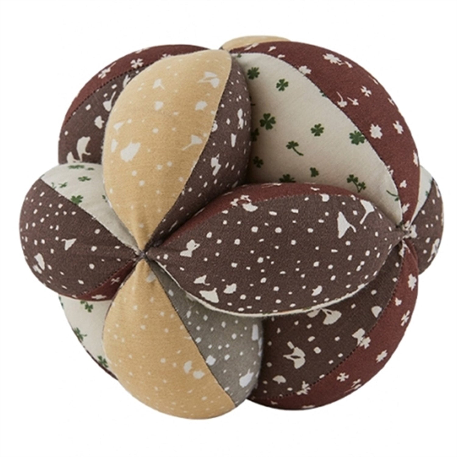 Super fin ball til de minste. Denne i utrolig vakre jordfarger. Ballen har forskjellige trykk på alle sider, og det er en liten bjelle inni. Ballen utvikler barnas sanser samtidig som den er underholdende for de minste.