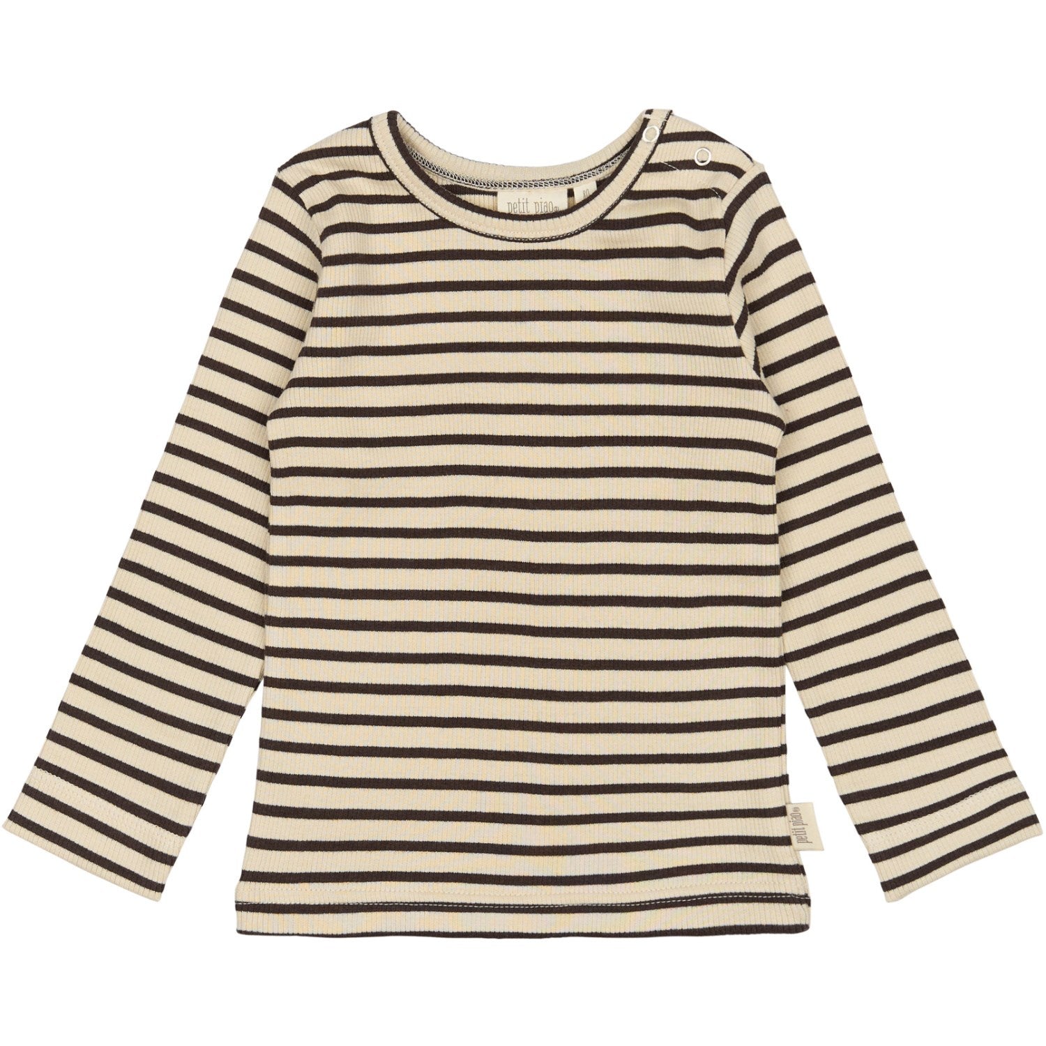 Petit Piao Coffee Bean/off White T-shirt L/S Modal Striped