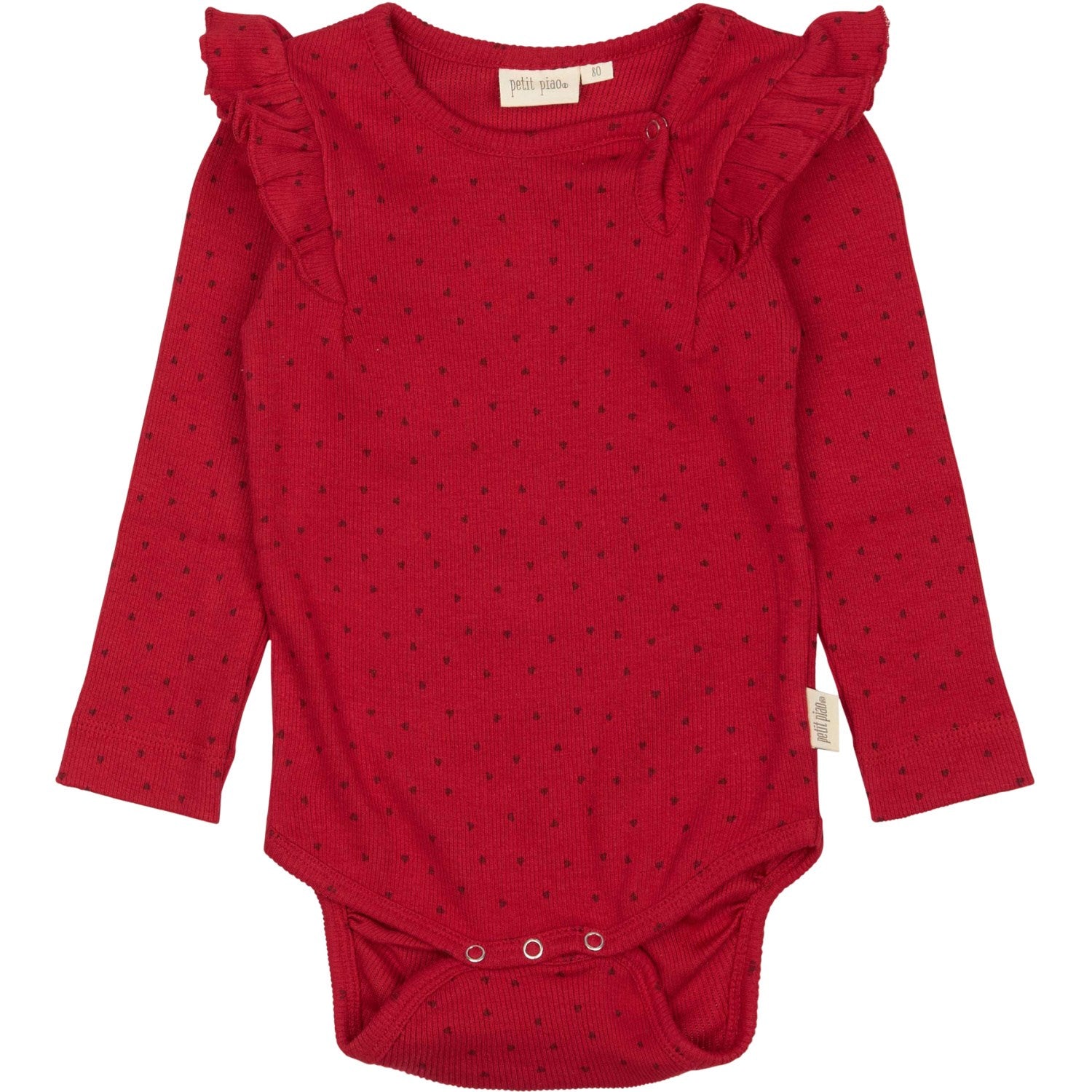 Petit Piao Jet Red/Biking Red Body L/S Frill Modal Heart
