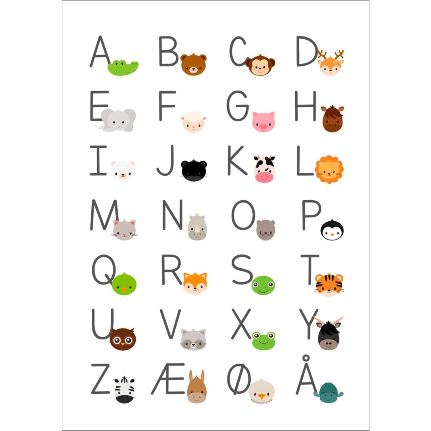 Lys opp barnerommet med denne sjarmerende alfabetplakaten med dyr! Perfekt for å kombinere læring og lek, denne A3-plakaten er ikke bare en fryd for øyet med sine fargerike illustrasjoner, men også en praktisk måte å introdusere barnet til alfabetet. Trykt i Danmark på miljøvennlig FSC-sertifisert papir sikrer den både kvalitet og bærekraft. En ideell dekorasjon som også fungerer utmerket som en personlig gave til nybakte foreldre eller som en unik dåpsgave. Vær oppmerksom på at rammer selges separat. Materialer: Papir Mål: Svar 3