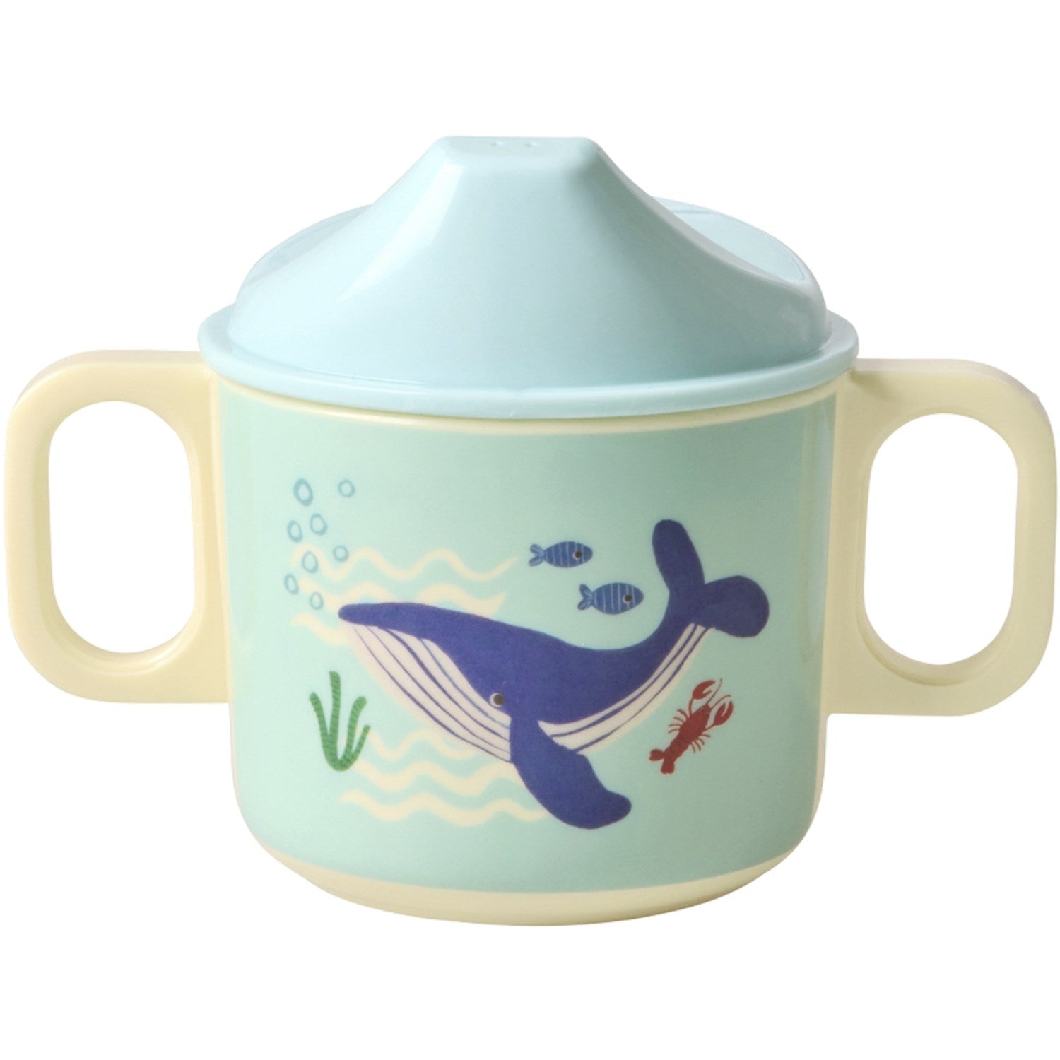 Rice Blue Ocean Print Melamine 2 Handle Baby Kopp With Lid 250 Ml