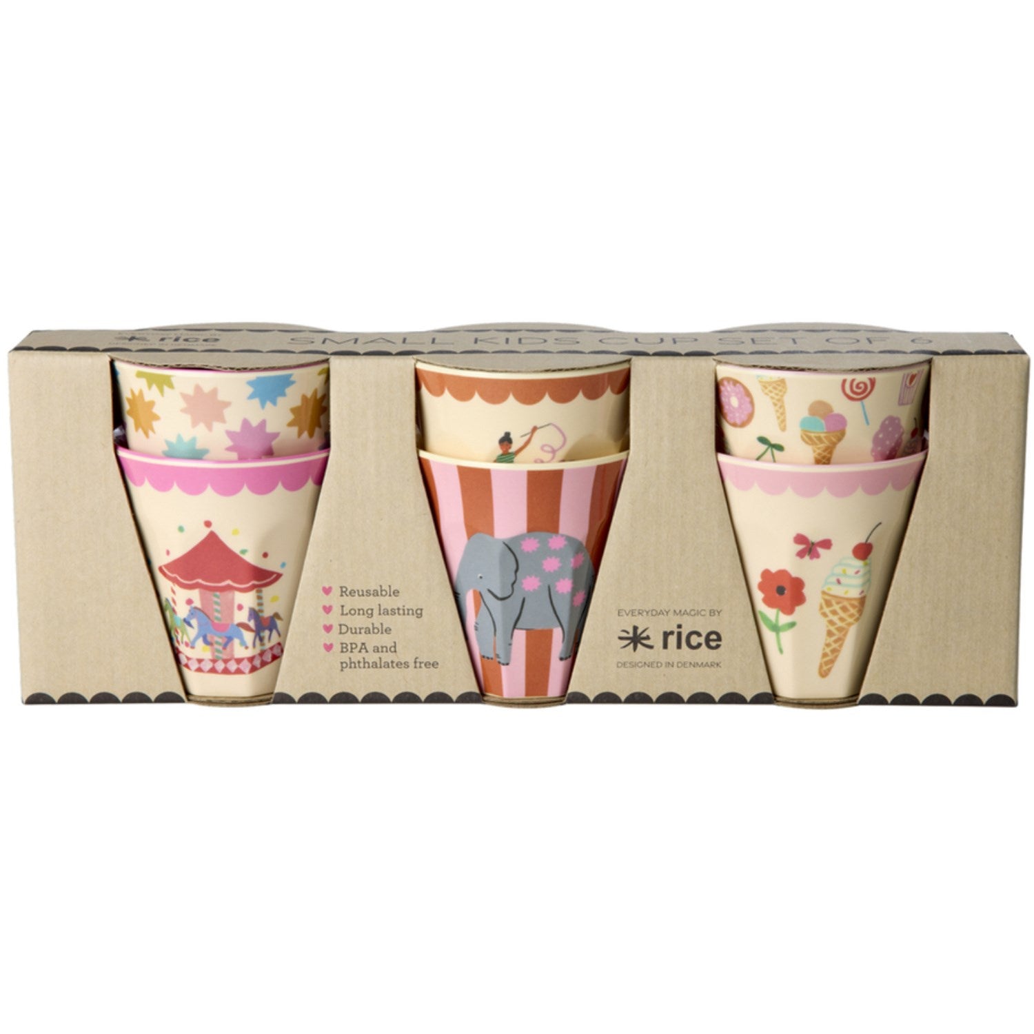 Rice Fun Fair Print Pink Melamine Kopper Small 6 Pakke