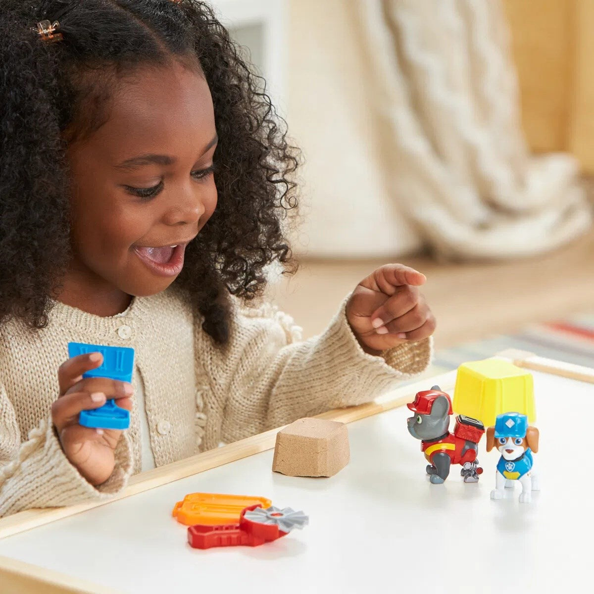 Ta med hjem gleden og kreativiteten med Rubble & Crew Figure 2 Pk Charger & Wheeler. Dette settet engasjerer barna med sine to eksklusive figurer, kledd i autentiske arbeidsklær akkurat slik de vises i serien. Settet kommer med 85 g av den magiske Kinetic Sand, ideell for å bygge og forme med de inkluderte byggelekeverktøyene. Ikke bare er dette settet fantastisk for barnas kreativitet og motoriske ferdigheter, men det er også enkelt å rydde opp – Kinetic Sand er selvklebende og enkelt å håndtere. Perfekt tilpasset for små byggmestere fra tre år og oppover, gir dette lekesettet timevis med underholdende og lærerik lek.