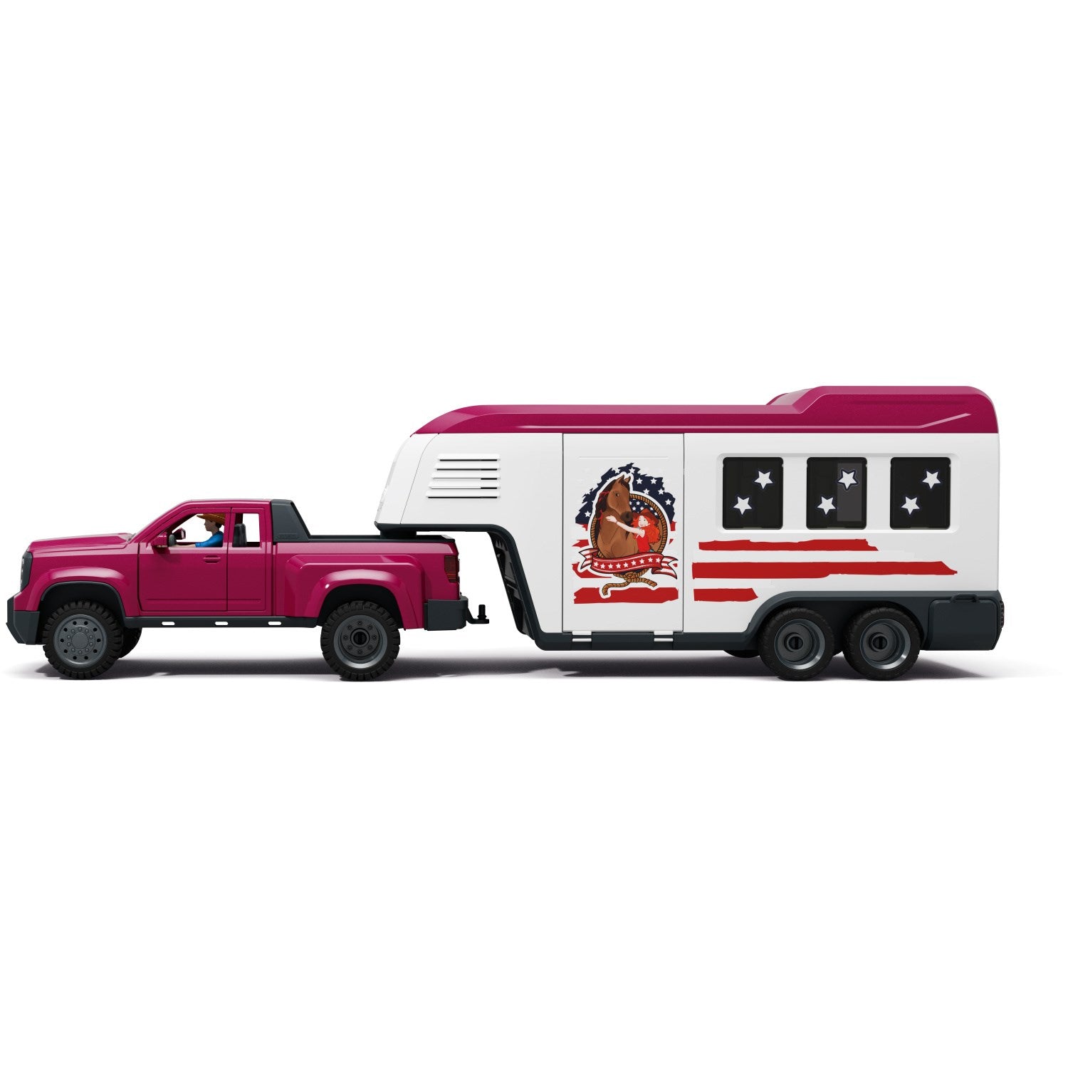 Den romslige traileren tilbyr plass til opptil fem hester, noe som gjør settet perfekt for både lek alene og med venner. Lett å bære, lagre og vedlikeholde, passer dette lekesettet ypperlig for eventyr både i og utenfor huset. Med Schleich Lakeside Lastbil og Trailer er ditt barn klar for et eventyr i det ville vesten, hvor lek møter læring på en sikker og morsom måte.