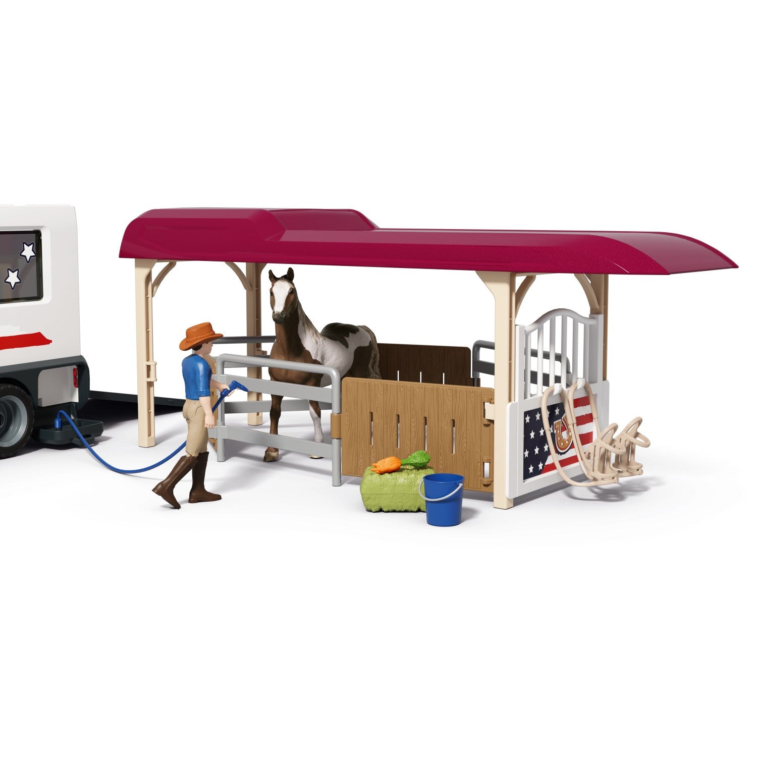 - Ekstra: 2 hester, figurer, en hund og tilbehør.