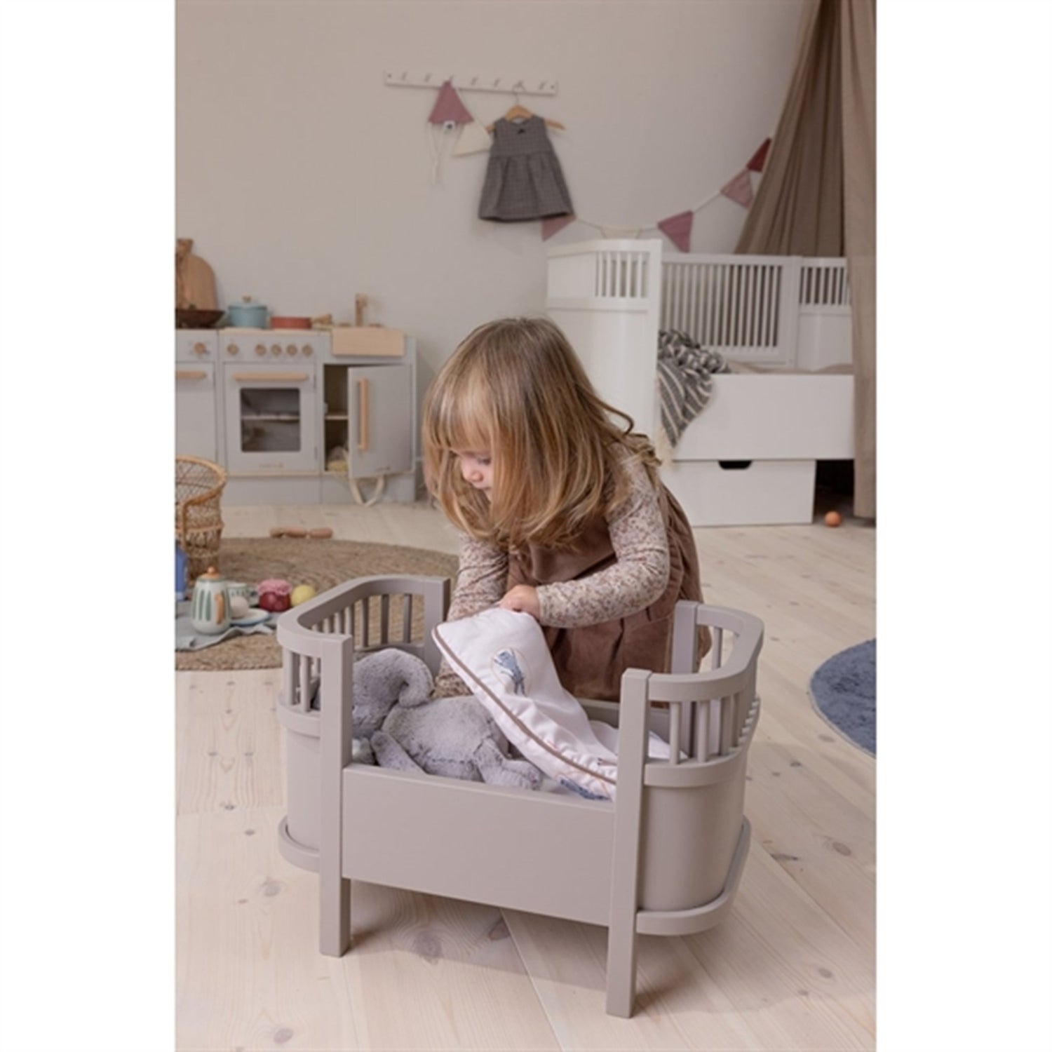En dukkeseng med stor lekeverdi og samtidig en fin pyntegjenstand når den ikke er i bruk. En seng som barnet kan bruke når bamsen eller dukken skal kose. Designet fra Sebra Sengen, Baby & Jr. , den ikoniske danske barnesengen, som er basert på det originale JUNO-designet. Dimensjonene på Sebra Doll's seng matcher barnesengens, og uttrykket er basert på de klassiske runde hjørnene og de velkjente gavlendene med sprosser, som gir denne dukkesengen et helt spesielt og stilig utseende. Dukkesengen er solid og egnet til lek for barn fra 1 år. Madrass inkludert. Sengetøy kan kjøpes til dukkesengen.
