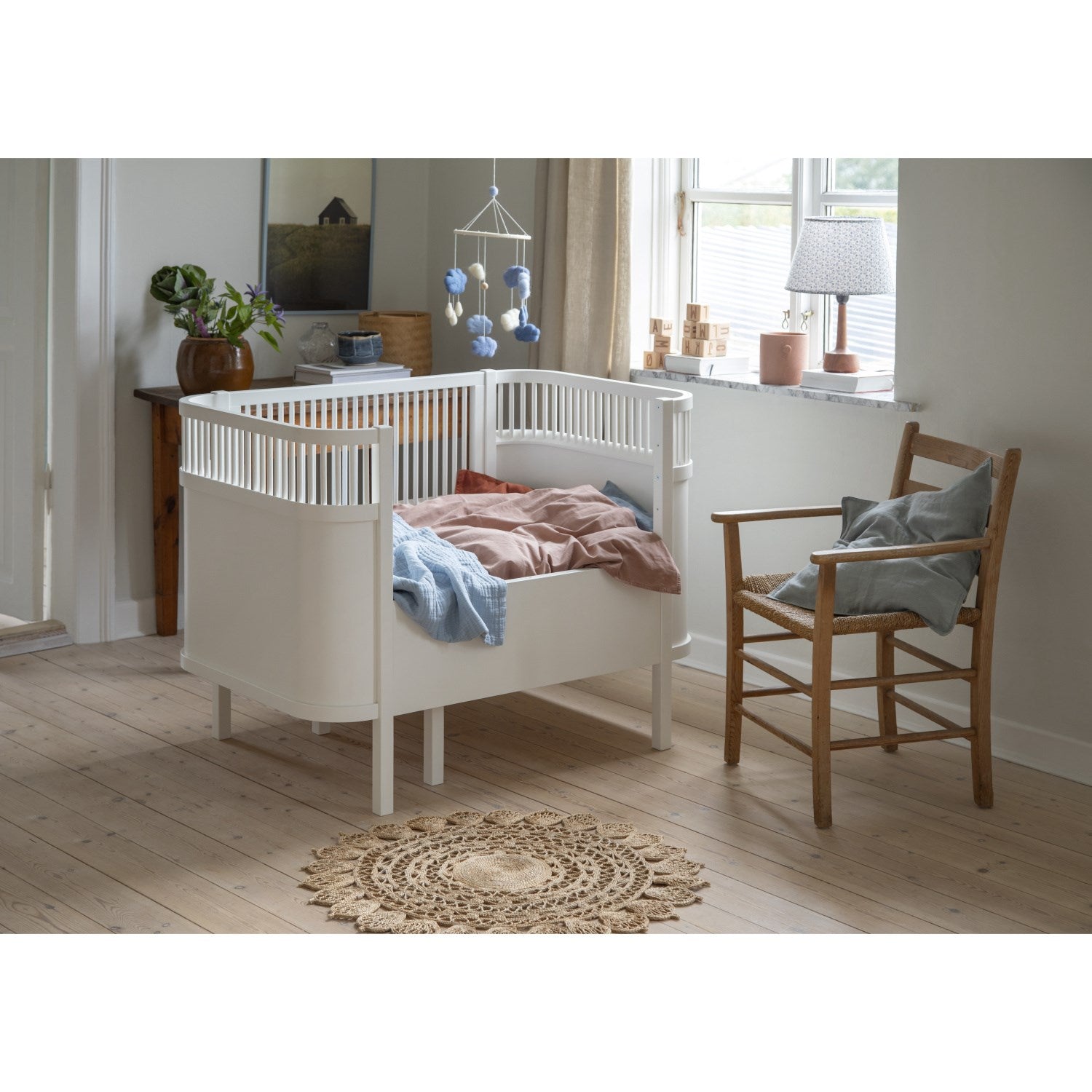 Oppdag gleden og tryggheten ved Sebra Bed, Baby & Jr., et tidløst dansk designikon tegnet av arkitekt Viggo Einfeldt for over 80 år siden. Denne multifunksjonelle barnesengen kombinerer estetikk med praktiske løsninger og sikkerhet. Laget av sertifisert tre og tildelt EUs miljømerke, gir den et sunt sovemiljø for de minste. Med en justerbar sengebunn som kan løftes og senkes, tilpasser sengen seg barnets vekst fra spedbarn til junior. Sengebunnen kan enkelt justeres, og når barnet vokser, kan sengen utvides til en lengde på 157,75 cm uten behov for ekstra deler, perfekt tilpasset barn opptil 6-7 år. Designet for robust bruk, bærer den opptil 15 kg i øvre og 80 kg i nedre del, mens den originale Sebra-madrassen inkluderer en forlengelsesdel for enda større brukervennlighet. Velg Sebra Bed for en holdbar og estetisk løsning som vokser med barnet, ideelt for skape et stimulerende og trygt sovemiljø.