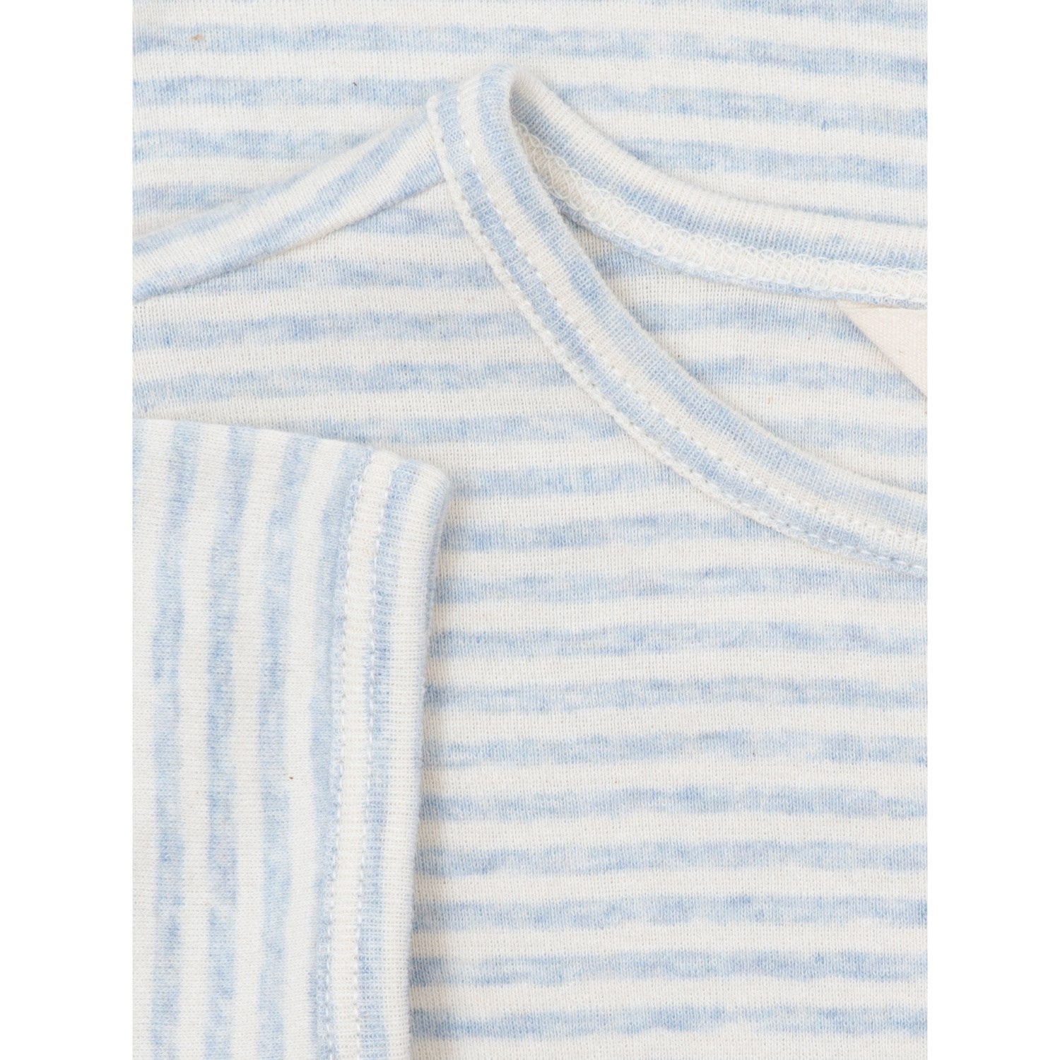 Oppdag vår sjarmerende kortermede t-skjorte i melange-kvalitet, perfekt for små oppdagelsesreisende. Stripene i delikat Mist-blått og off-white gir et friskt og stilfullt utseende. Denne slim fit-t-skjorten er laget av 100 % økologisk bomullsribbe, og er GOTS-sertifisert, noe som garanterer både komfort og bærekraftighet. Den avrundede halslinjen sikrer behagelig påkledning og passform. Ideell for lek og læring, og takket være det økologiske materialet, er den både myk mot huden og enkel å vedlikeholde. Gi barnets garderobe et løft med denne miljøvennlige og stilige t-skjorten.