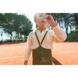 Oppdag de sjarmerende og komfortable Silly Silas fotløse strømpebuksene med seler! Disse leggingsene er laget i mykt materiale som er skånsom mot sensitiv barnehud, og har et stilig olivengrønt stripemønster. Designet er praktisk med justerbare seler for perfekt passform og bevegelsesfrihet. De er lett å vedlikeholde og passer utmerket til daglig bruk. Gi barnet ditt en kombinasjon av stil og komfort!