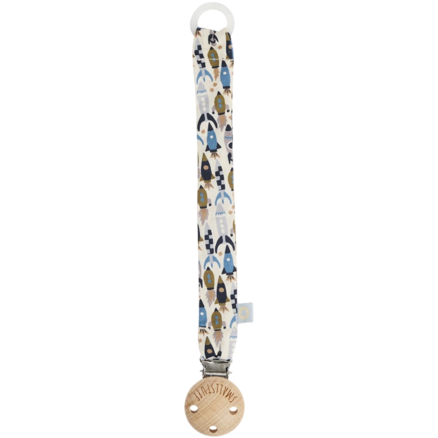 Smokkesnoren fra Smallstuff med sitt tiltalende blå rakettmønster er perfekt for ditt barn. Laget av 100% bomull, og designet med treklips og gummiring, sikrer den at smokken alltid er nær barnet sikkert og komfortabelt. Med en lengde på 22 cm oppfyller den alle godkjente sikkerhetsstandarder og er testet for å garantere din lille maksimal trygghet og stimulering. Enkel å bruke og vedlikeholde, denne smokkesnoren kombinerer funksjonalitet med et sjarmerende design.