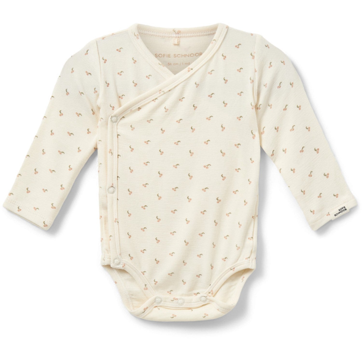- Ekstra: Langermet kroppsstrømpe, kremfarget bunn med rosa kirsebær, sideomslagsdesign, rund hals, knappet side og kant