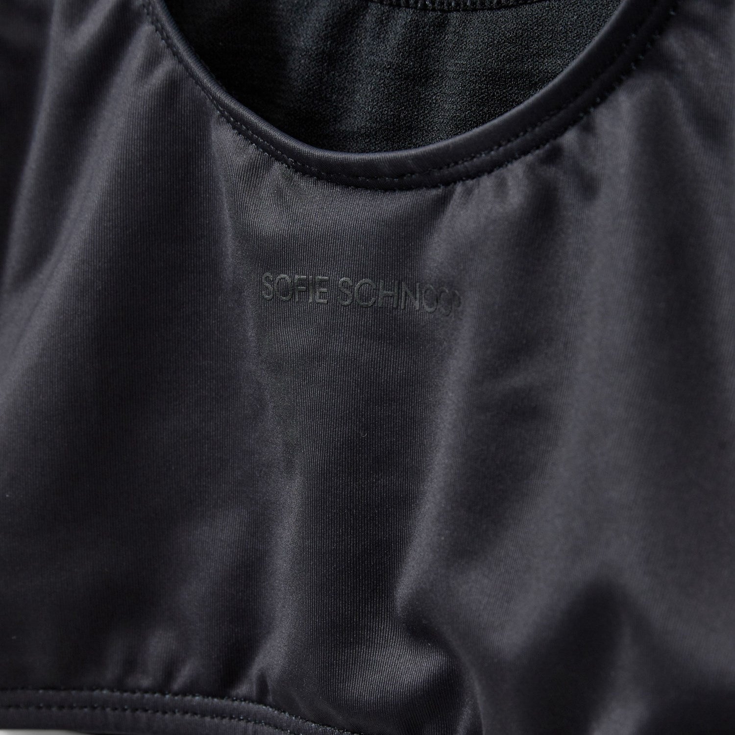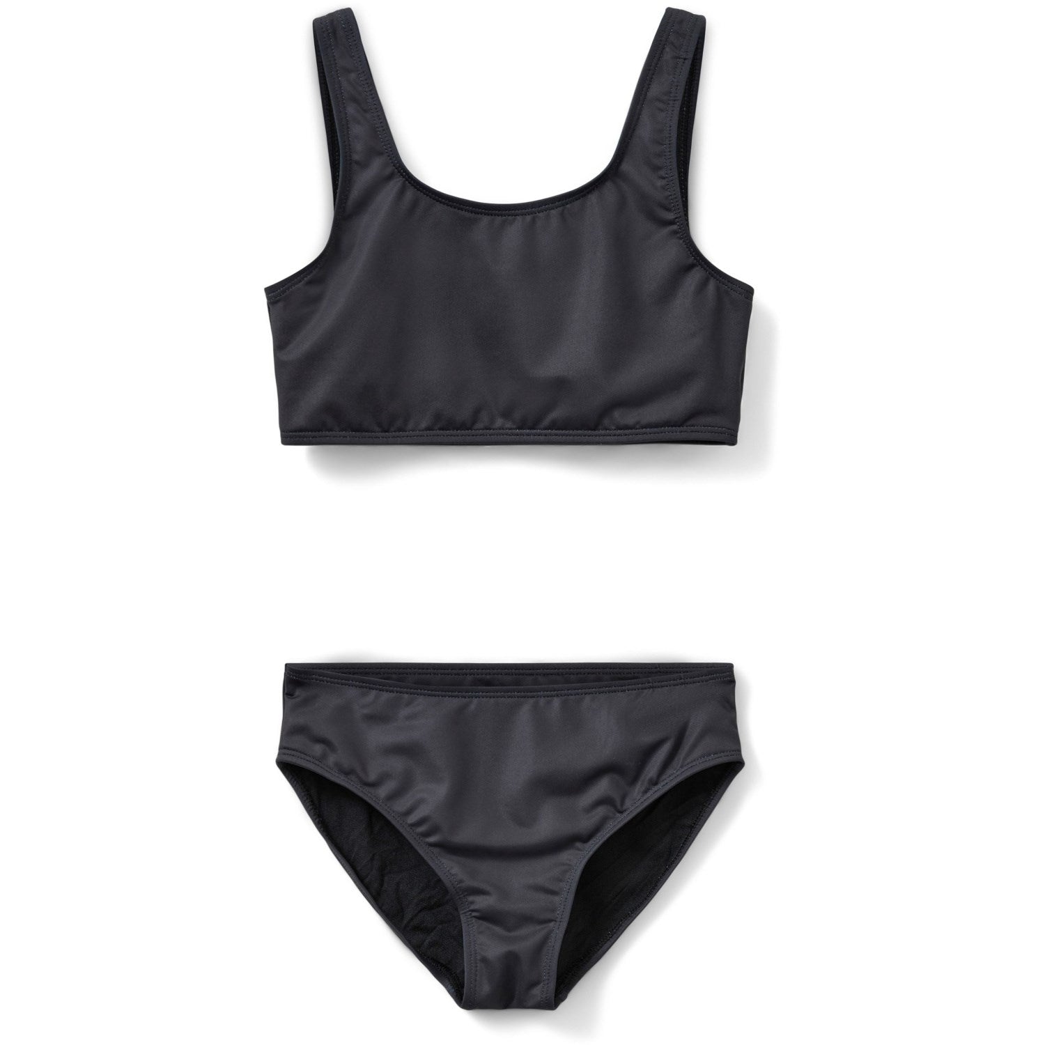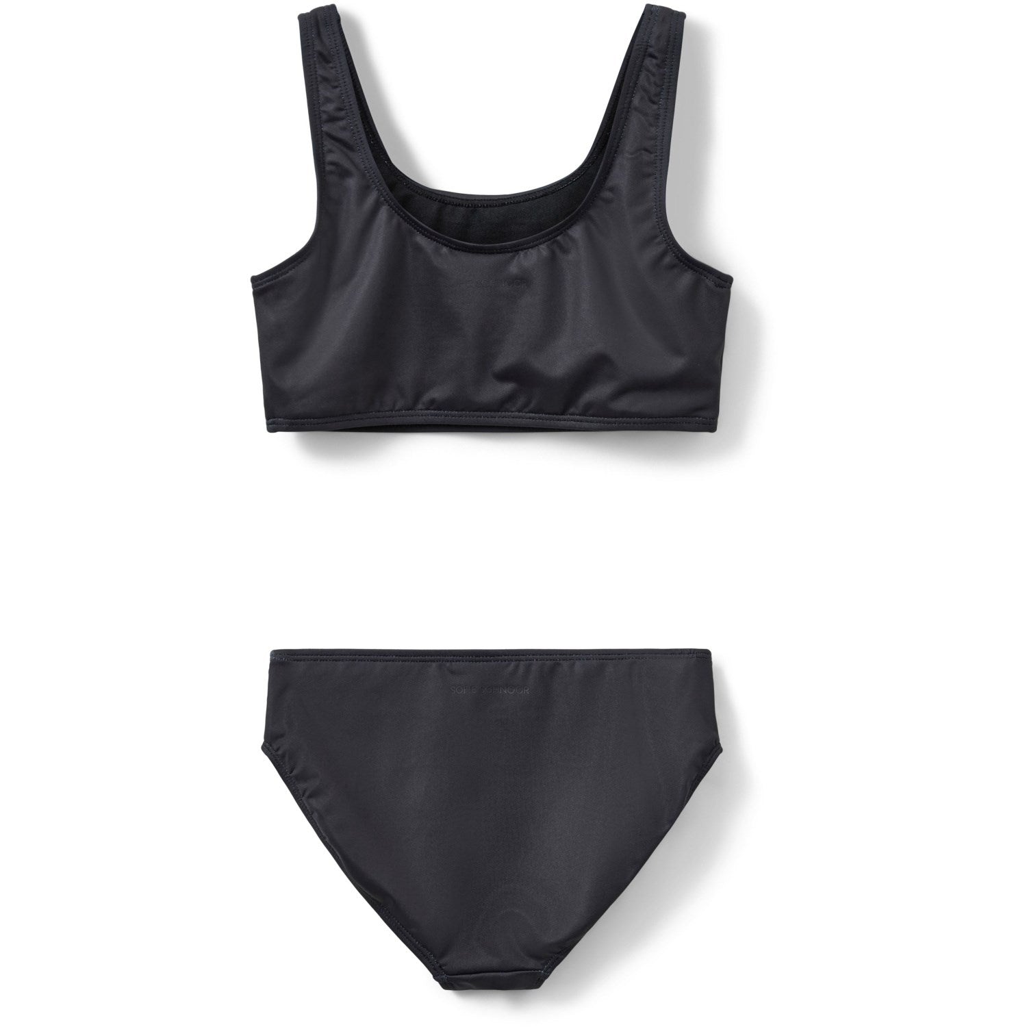 Denne nydelige svarte bikinien fra Sofie Schnoor er perfekt for sommerens morsomme vannaktiviteter! Den har en fin rund hals og brede stropper som sørger for at toppen holder seg der den skal mens barnet ditt leker. Laget av 82 % resirkulert polyester og 18 % spandex, gir den både et miljøvennlig valg og en superkomfortabel passform, klar for enhver svømmetur eller strandmoro.