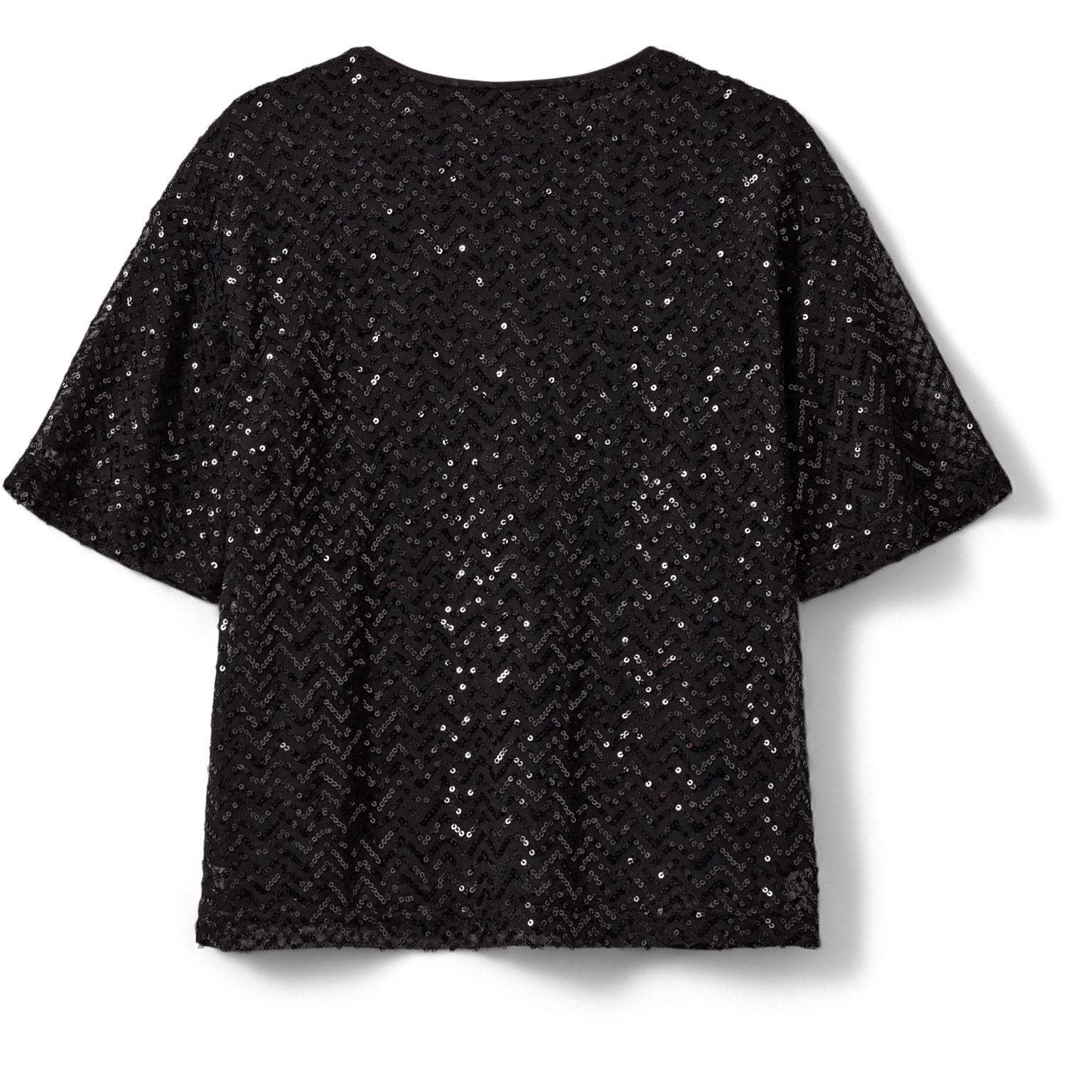 Gjør hverdagsgarderoben din spesiell med denne sjarmerende svarte T-skjorten fra Sofie Schnoor. Denne nydelige skjorten kombinerer stil og komfort, og er ideell for barnet ditt. Med en klassisk rund hals og korte ermer er den både praktisk og stilig, og den er laget av stoffer som sikrer holdbarhet og enkelt vedlikehold. Du vil legge merke til hvordan den svarte fargen elegant komplimenteres av glitrende glitterdetaljer av paljetter, som gir et snev av letthet og finesse til designet. En ideell kombinasjon av mote og funksjonalitet som vil glede både barn og foreldre!
