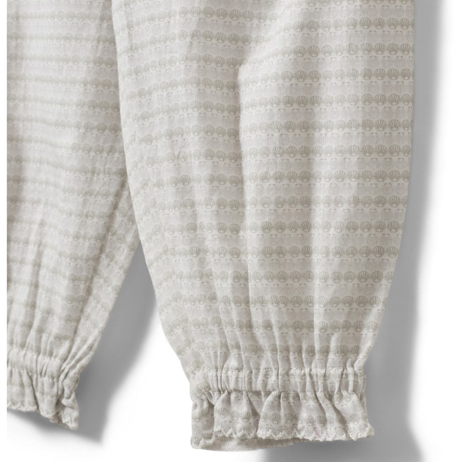 La oss sette i gang leketiden med Sofie Schnoor Off White W Aop Carlinakb Pants! Disse luftige buksene kommer med en fantastisk stor volangkrage som tilfører en klype moro til enhver dag. Laget i et lett vevd stoff for maksimal komfort, har de lange ermer med herlig elastikk og rynkete detaljer ved håndleddene. Den løse, A-formede passformen sikrer at den lille kan bevege seg fritt, noe som gjør dem perfekte både for lekeplasseventyr og fotodag!