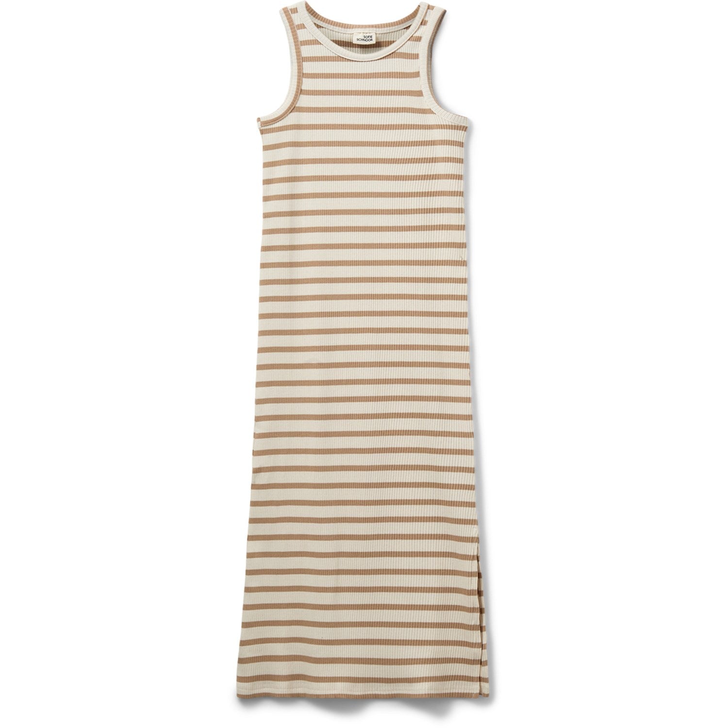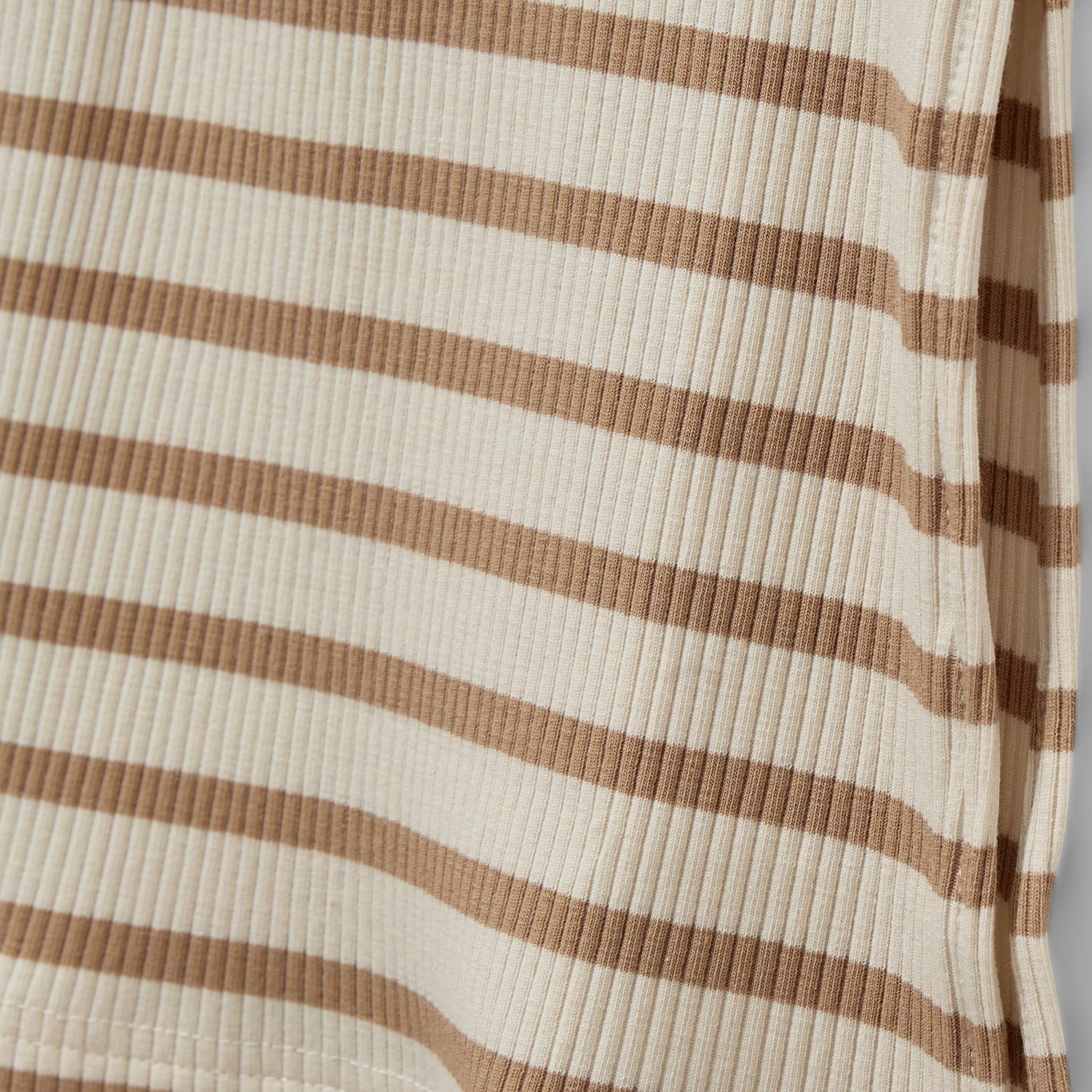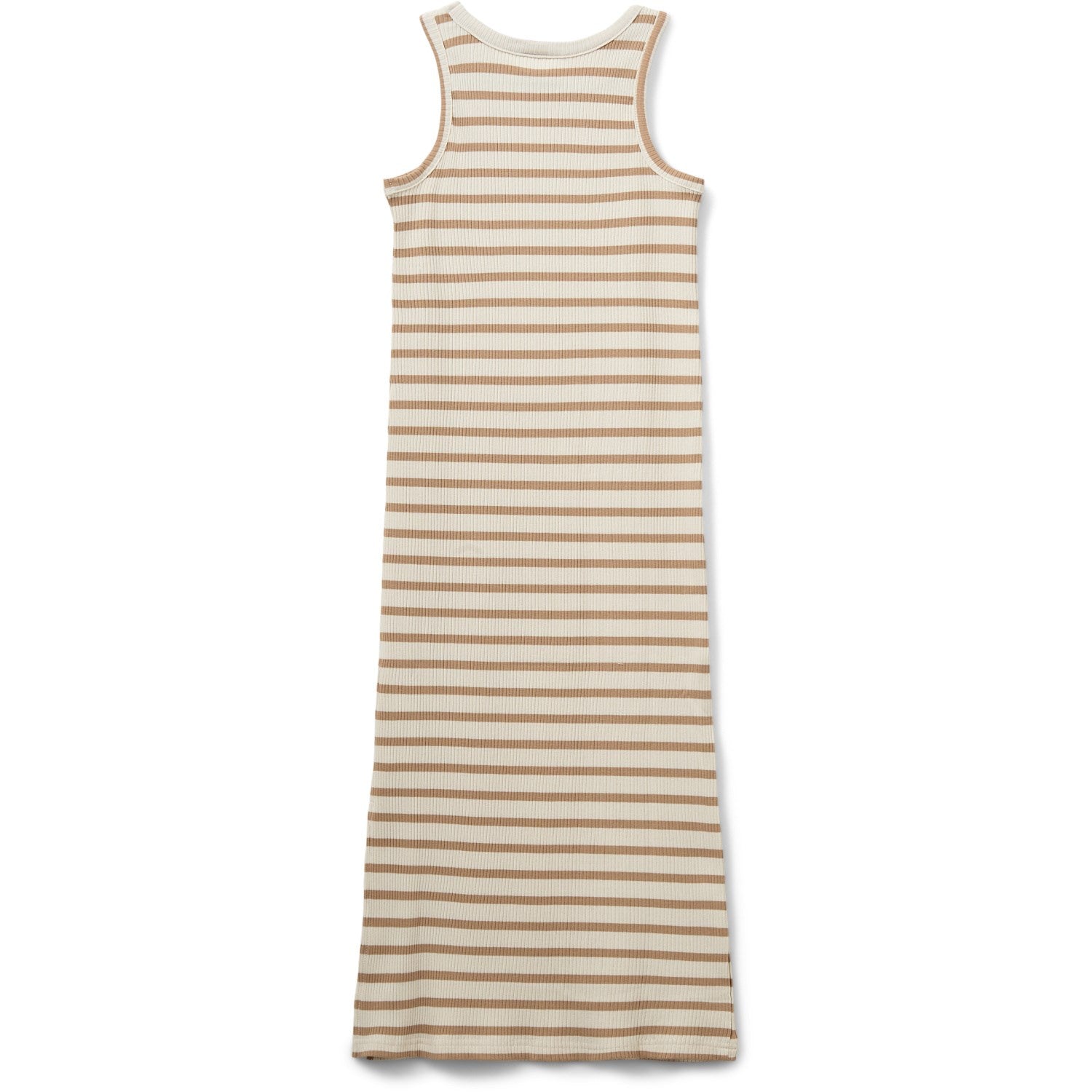Skjem bort din lille prinsesse med Sofie Schnoors Facitasy kjole i myk brun ribbestrikk. Ermeløs og komfortabel, perfekt for lek og eventyr på en solrik dag. Det søte stripete designet og den smarte knappelukkingen foran gjør den både stilig og praktisk. Denne kjolen er laget av 97 % økologisk bomull, og er både myk mot huden og vennlig mot naturen. En ekte luksus for enhver liten motedronning!