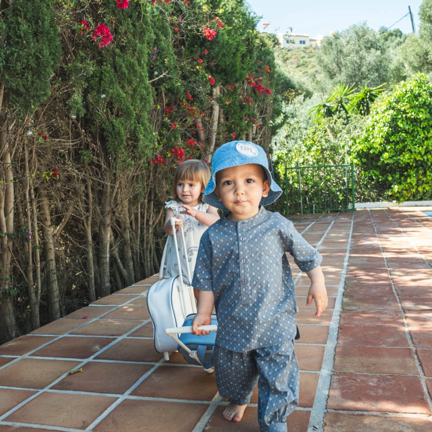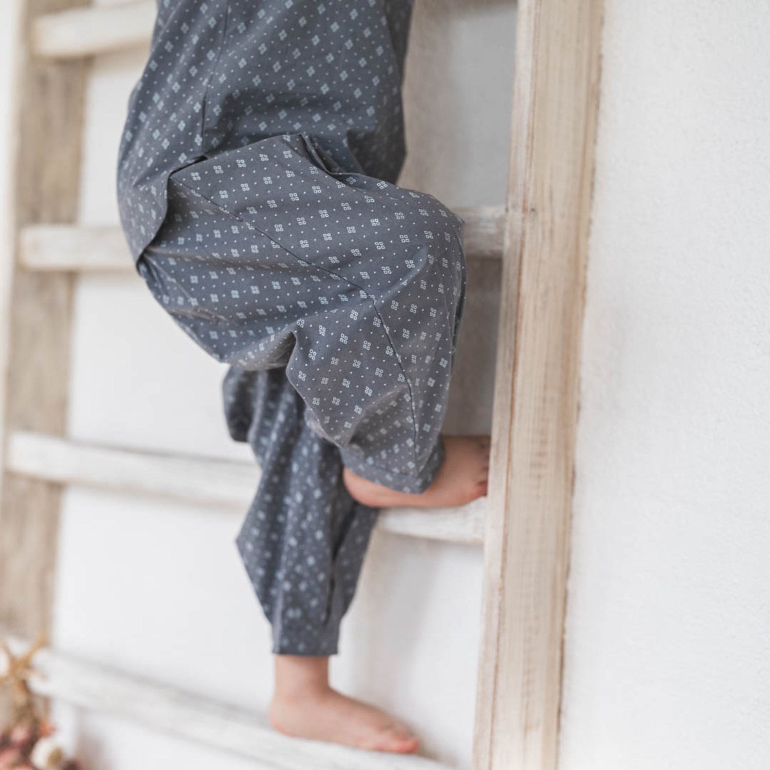 Gi barnet ditt stil og komfort med "That's Mine Brilliant Blue Robbie-Bukser". Disse baggy buksene er preget av et unikt fingeravtrykksmønster som gjør hvert plagg spesielt. Laget med justerbar strikk på innsiden av midjen for perfekt tilpasning og enkel justering etter barnets vekst. De levende blå nyansene er ideelle for både lek og mer formelle anledninger. Buksene er designet for å sikre maksimal komfort og bevegelighet, noe som gjør dem til et ypperlig valg for barnets hverdagsbruk.