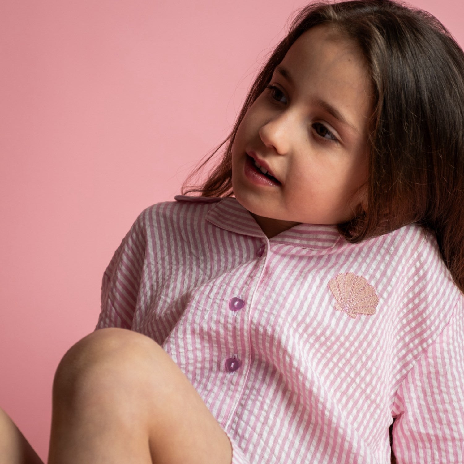 Oppdag "That's Mine Pink Stripe Ino Skjorte", perfekt for småbarn som elsker komfort blandet med stil. Denne søte skjorten i myk seersucker-stoff sikrer optimal bevegelsesfrihet, og er designet med en løstsittende passform. Med sitt sjarmerende lille broderi på brystet og de lekne rosa stripene, er den ikke bare stilig, men også ideell for enhver anledning. Den er lett å matche med diverse underdeler, som Isa-shorts, for et komplett og bekymringsfritt antrekk. Dette plagget er en fryd både for øye og komfort, perfekt for lek og moro!