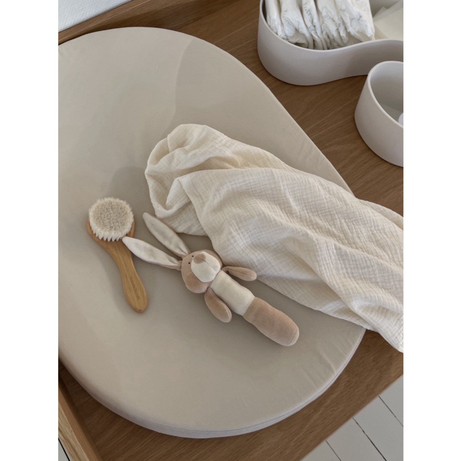 Med sin multifunksjonalitet tilbyr Bitte Light Stone Oval Stellepute ikke bare en sikker og behagelig plass for stell, men også en stimulerende omgivelse for barnet ditt med sin myke og tiltalende tekstur.