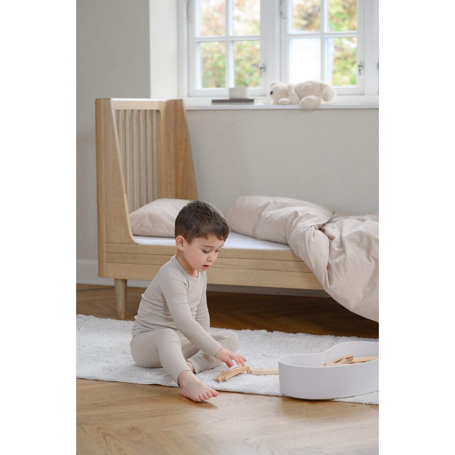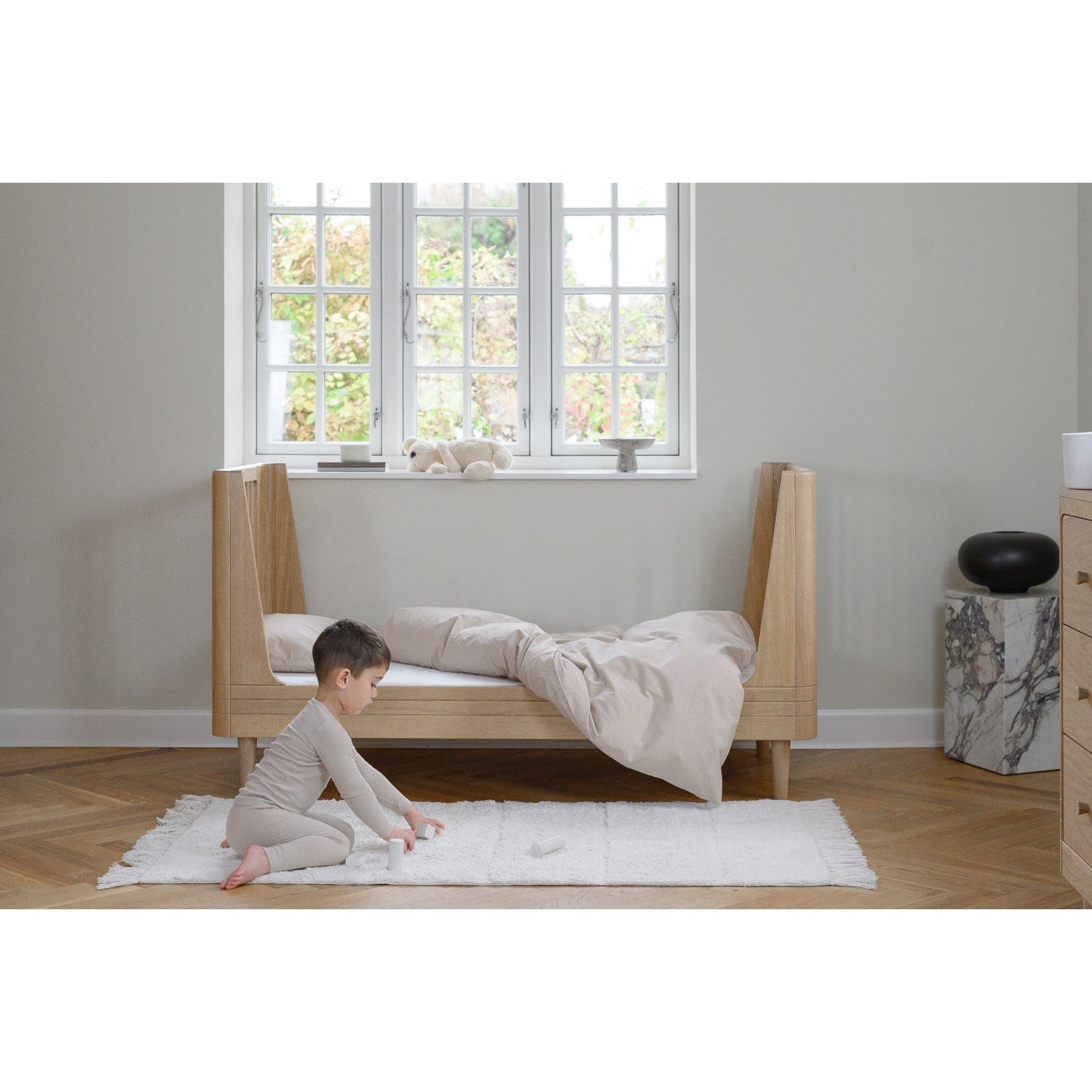 Gi barnerommet et løft med We Are Bitte Oak Nature Forlængersættet. Dette tilbehøret forvandler raskt Nature babysengen til en funksjonell juniorseng, som vokser med barnet gjennom årene. Sengen er laget av solid eik med avrundede detaljer, noe som gir varme og et elegant uttrykk. Forlengersettet er utformet med fokus på sikkerhet og er grundig testet i henhold til de nyeste standardene, noe som sikrer at barnet ditt sover trygt.
