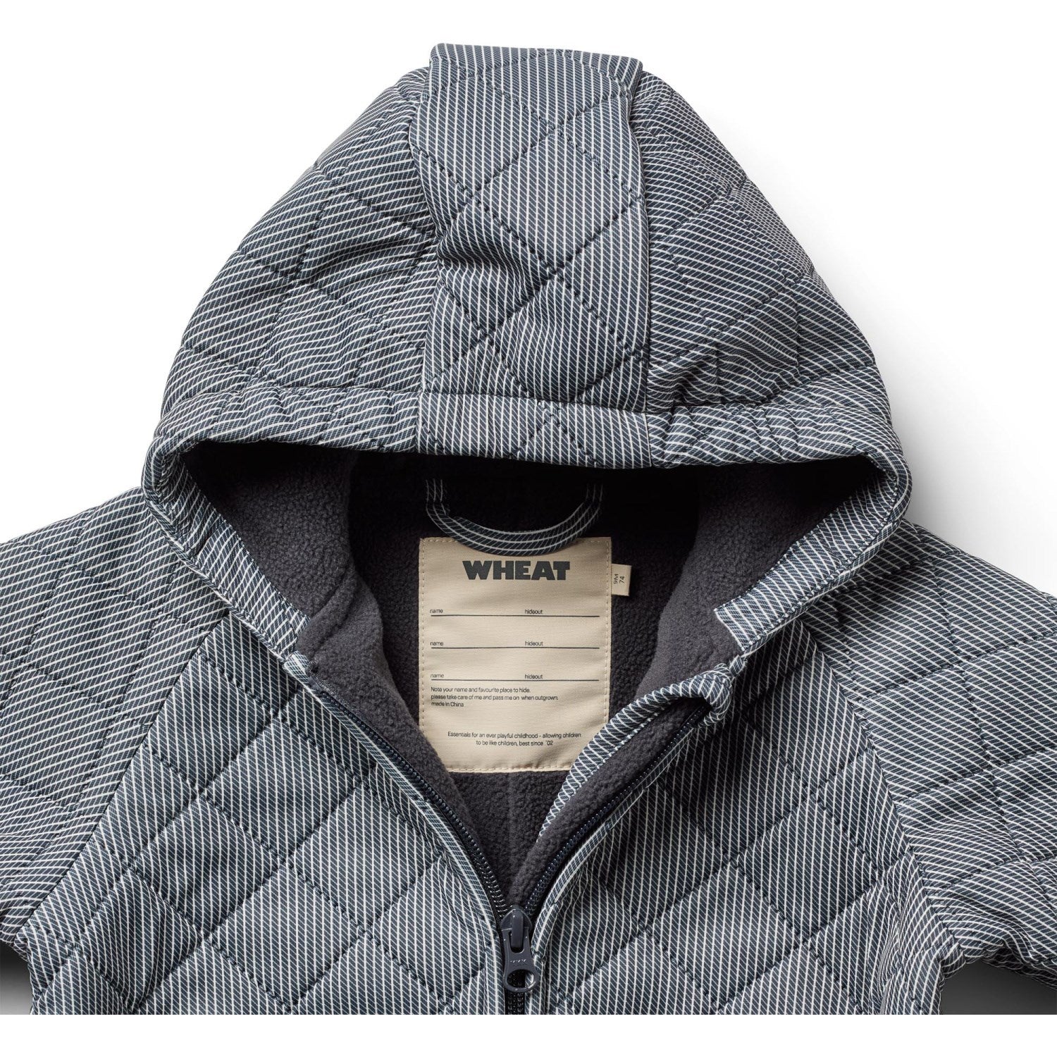 Gjør deg klar for eventyr i all slags vær med Wheat Ink Stripe Thermo Suit! Denne sjarmerende termodressen kler barnet ditt for moro og lek utendørs med sitt stilige stripetrykk. Drakten er designet med smarte funksjoner som skjult glidelås, elastiske kanter og koselig fleecefôr i hetten som sikrer komfort hele dagen. Refleksene øker sikkerheten i de mørkere timene. Denne drakten er laget av 100 % resirkulert polyester, og er både miljøvennlig og praktisk, og perfekt for de kjølige dagene eller som et ekstra lag når det blir skikkelig kaldt.
