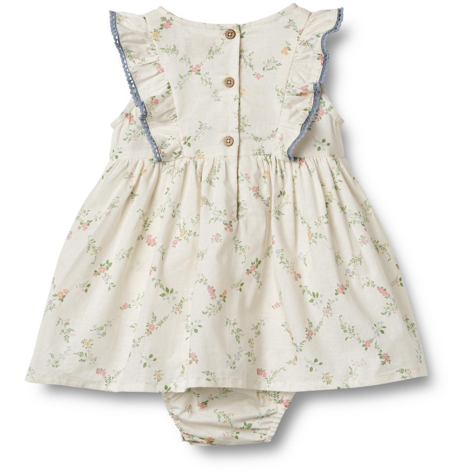 Gå inn i en hage full av glede med Luksusbabys Ivory Rutete Blomster Dress Dress! Dette fortryllende ermeløse nummeret, skreddersydd av myk, økologisk bomull, har søte volanger nederst på ermene, komplett med delikate bomullsblonder. En smart snittlinje i midjen skaper nydelig volum, perfekt for små snurrer. Den er også designet for bekvemmelighet, med knappelukking bak og praktiske trykknapper i skrittet for enkle bleieskift. Enten den er sammen med sandaler for en solrik dag eller lagdelt med leggings ved kjøligere anledninger, lover denne dressen både sjarm og komfort for den lille.