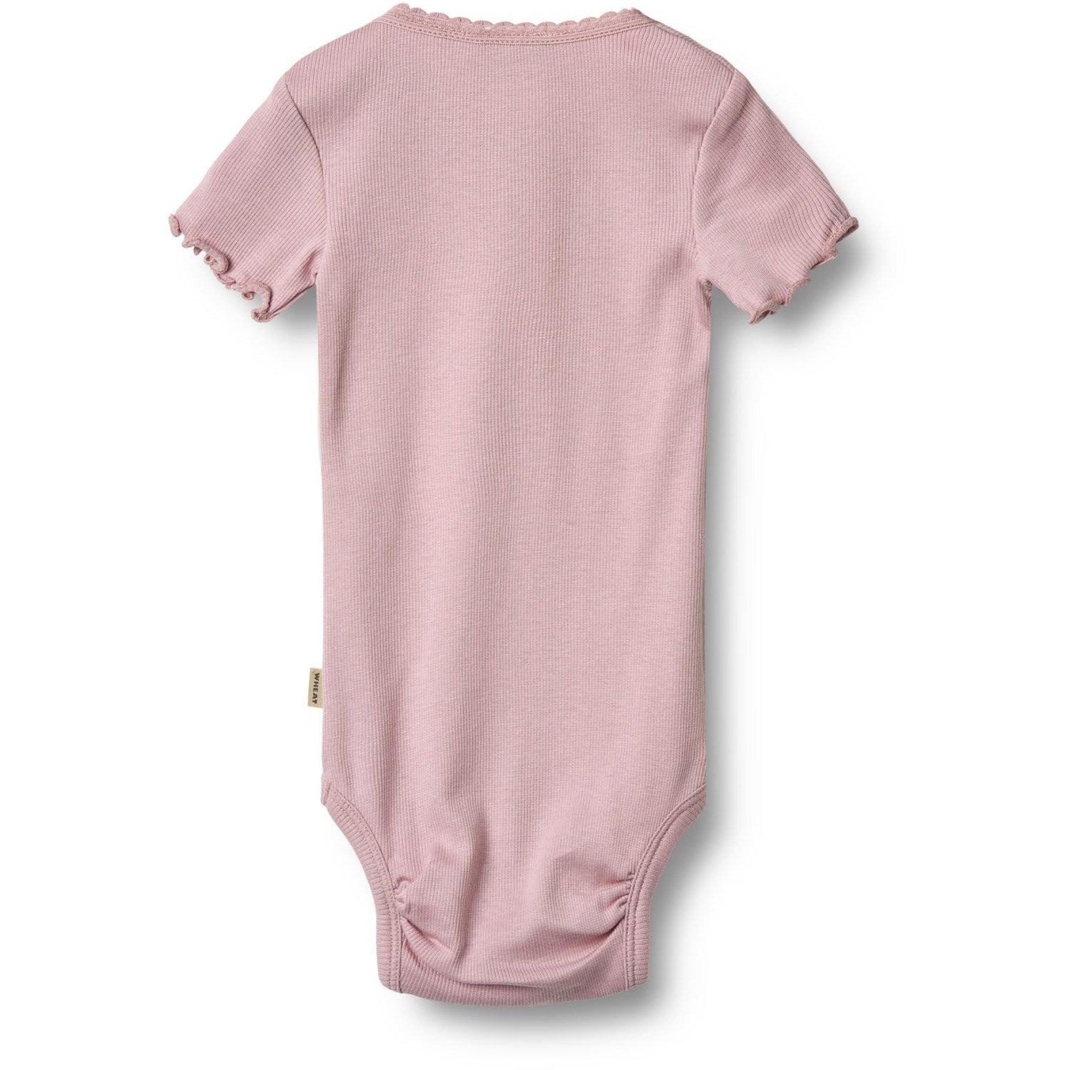 Kle den lille i den trøstende omfavnelsen til Wheat's Lavender Mist Rib Body S/S Edna. Denne unisex-bodyen er laget av en blanding av økologisk bomull, og har sjarmerende blondedetaljer langs halsen og delikat rynk foran for et snev av lunefullhet. Ribbestrukturen gir pusteevne og fleksibilitet, noe som sikrer at babyen din holder seg komfortabel hele dagen. Funksjonelle trykknapper på skulder og skritt gjør påkledning og bleieskift til en lek. Dette essensielle plagget er perfekt for å bruke alene eller lagvis, og kombinerer stil, komfort og praktisk for hverdagsluksus.