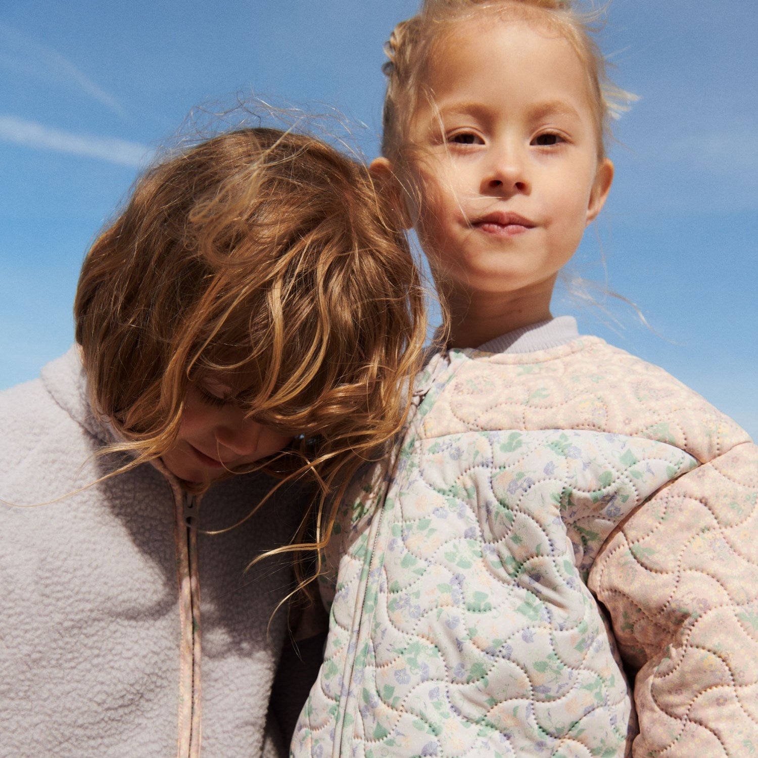 Gi barnets garderobe et løft med Wheat Lavender Rain Fleece Jakke Ellena. Denne sjarmerende fleecejakken i myk 100% resirkulert polyester er både miljøvennlig og behagelig for små kropper i bevegelse. Med detaljer som dobbeltlags stående krage og praktisk glidelås med hakebeskytter, er den ideell for både lek og læring.