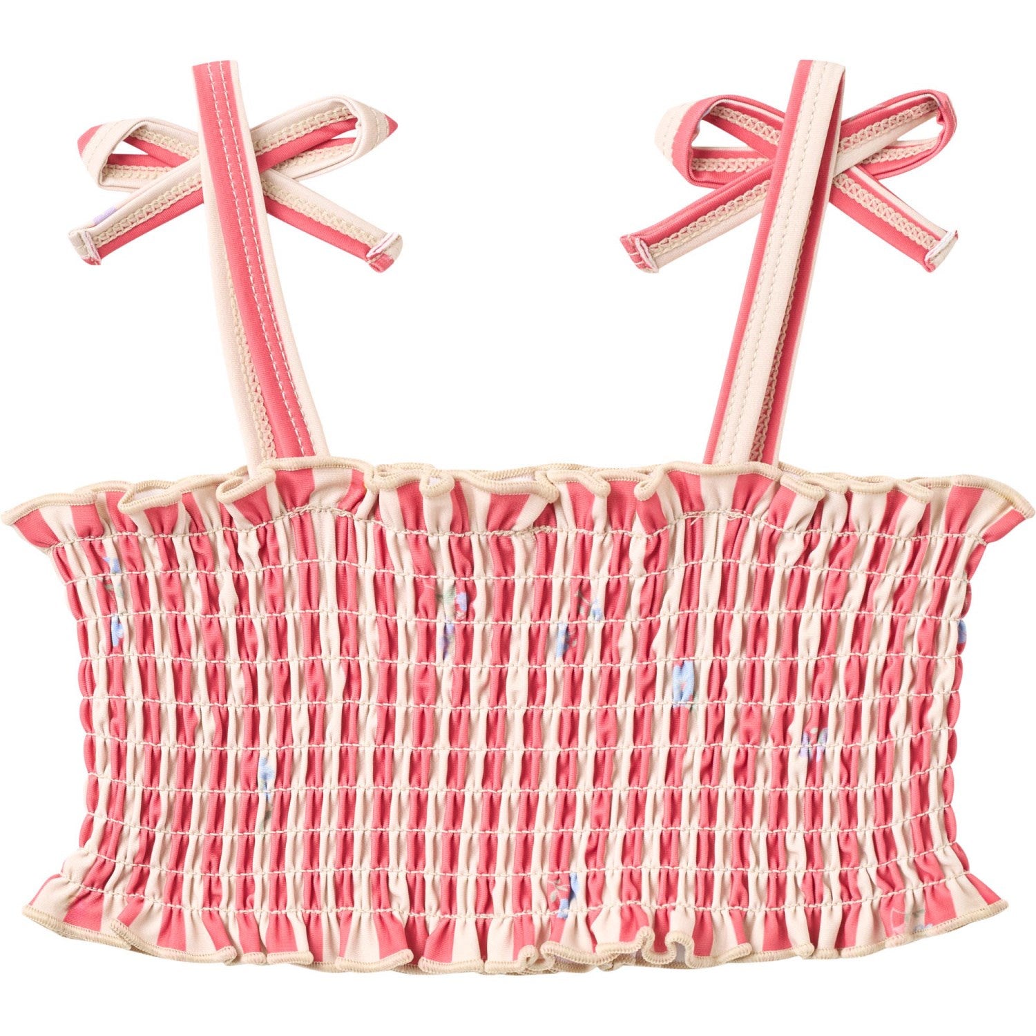 Gi barnet ditt muligheten til å skinne i sommer med vår sjarmerende "Wheat Red Stripe Flowers Bikini Carla". Denne herlige bikinien kombinerer komfort og stil med sin myke komposisjon av 83% resirkulert polyester og 17% elastan, noe som sikrer flott passform og frihet til lek og svømming.